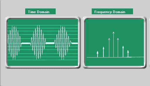 Above is a graphic showing an overmodulated signal on both an oscilloscope and a spectrum analyzer.